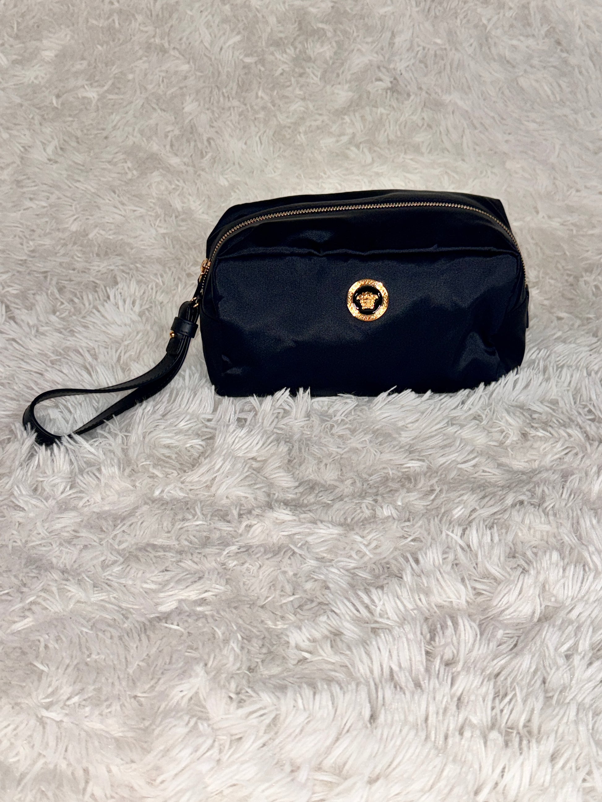 The Versace Nylon Toiletries Pouch is a stylish and practical accessory for travel. This black pouch features a solid design with a zipper closure and a fabric lining, making it perfect for storing toiletries or other small items. With a sleek design and Versace branding, this pouch exudes a sense of designer luxury. Made of durable nylon material with a canvas fabric type, this pouch is both stylish and reliable for any travel occasion.