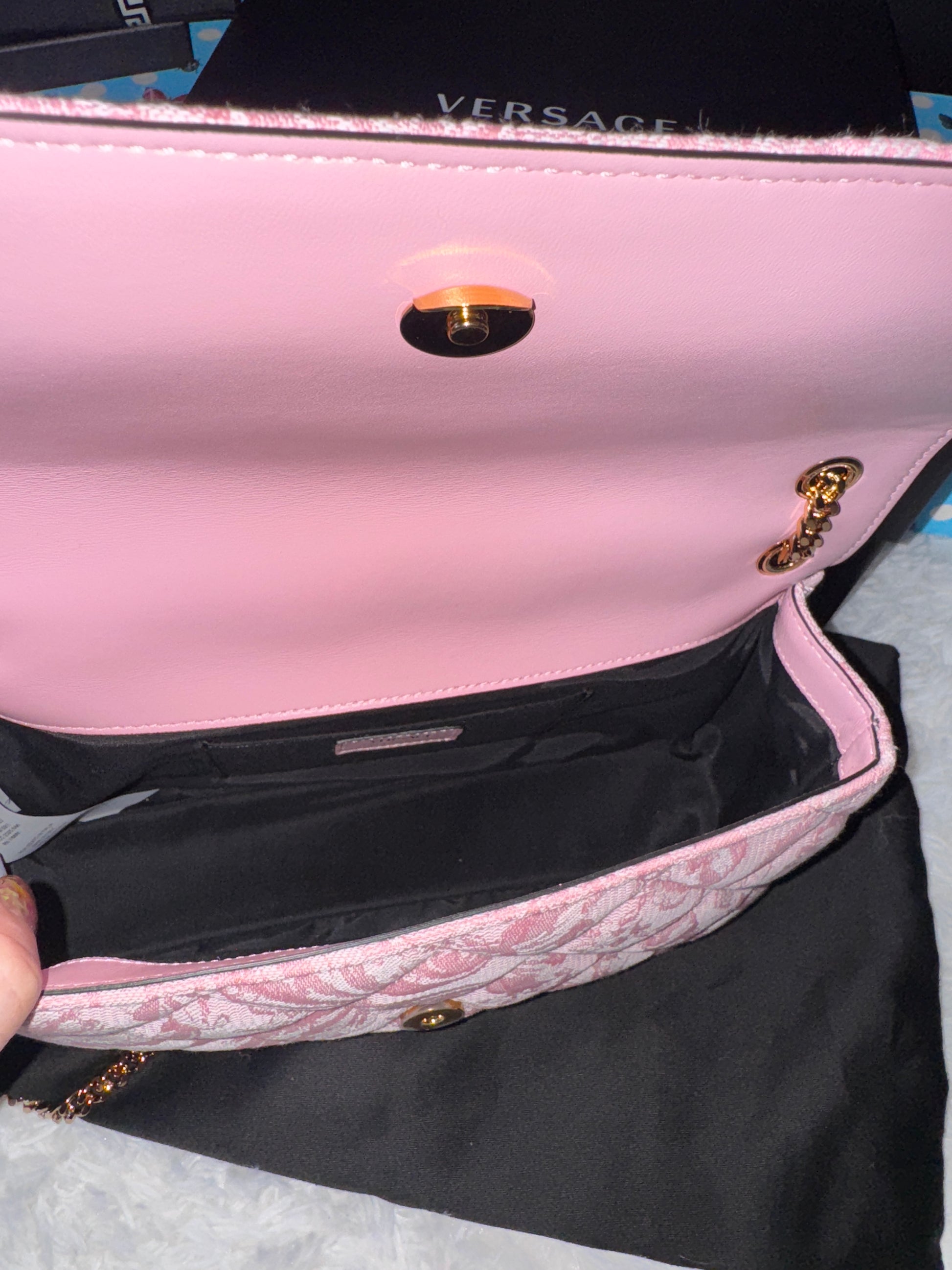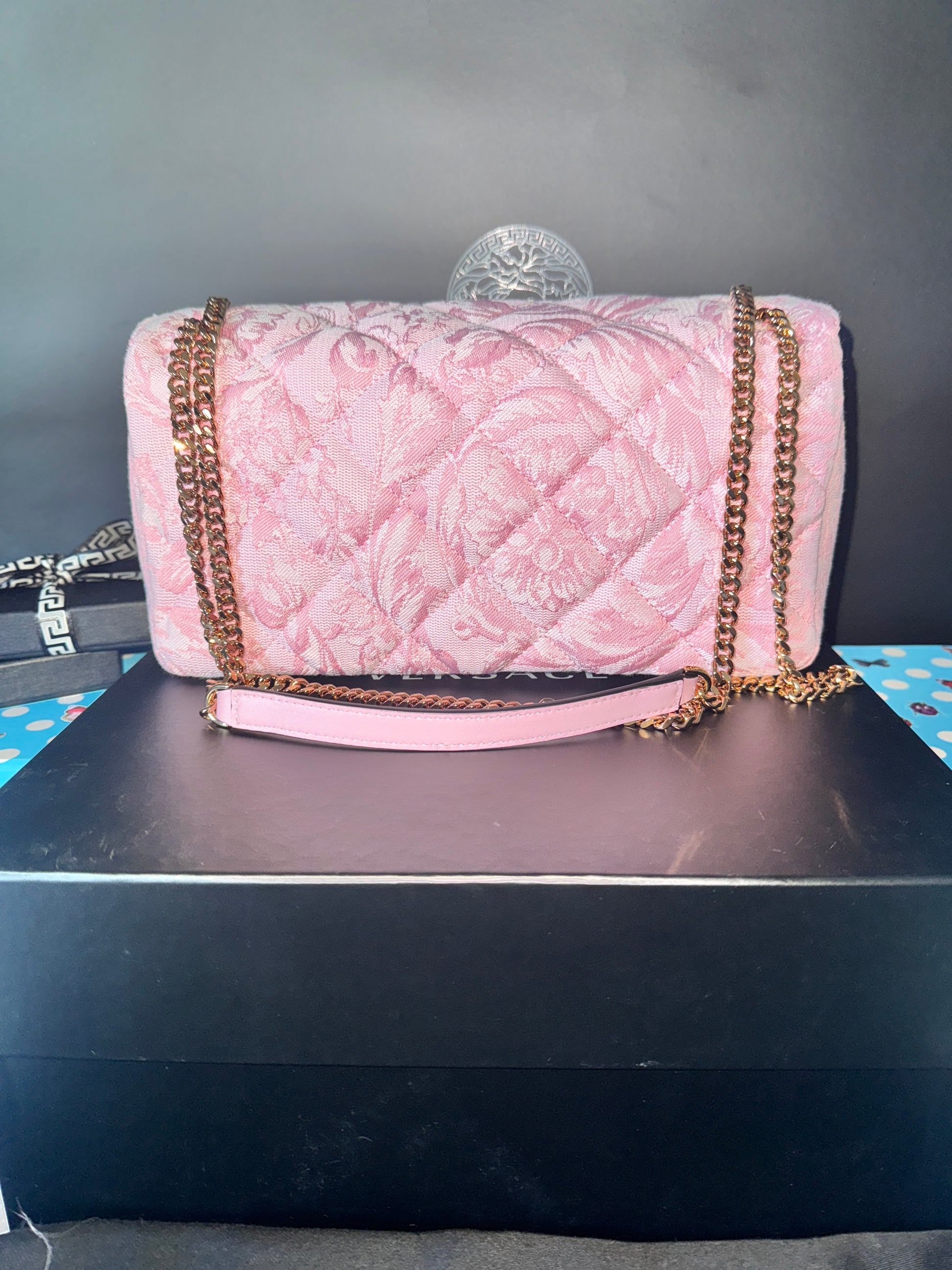 Versace Pink Quilted Fabric Lamb Shoulder Bag